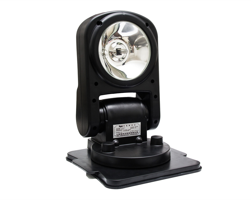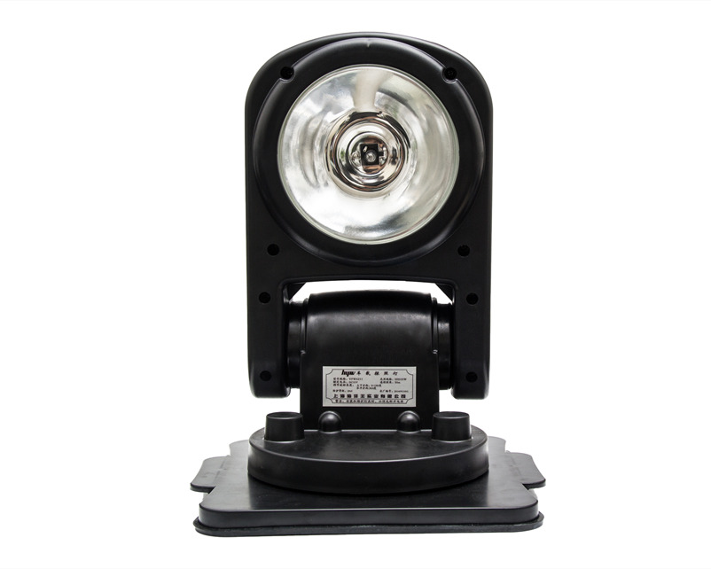 灯具底盘上装有强力吸铁石,方便将灯具吸附在汽车、船舶上移动照明或长期螺装于车、船顶作搜索照明使用,吸附在车顶上并不损伤漆。